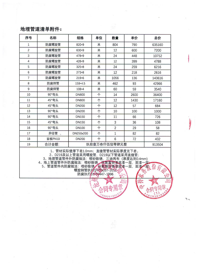 2019年9月份,友誠管業與中持水務股份有限公司(上市公司),簽訂了原陽縣污水處理廠項目的防腐螺旋鋼管合同,非常感謝貴公司對我們的信任,我們也一如即讓的做好每一支鋼管