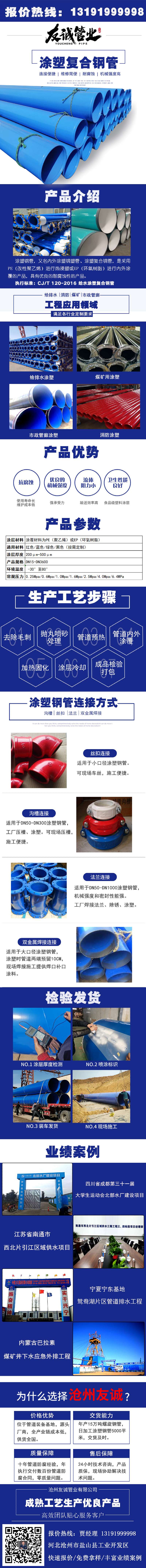 涂塑鋼管,又名鋼塑復合管、涂塑復合鋼管,是采用PE(改性聚乙烯)進行熱浸塑或EP(環(huán)氧樹脂)進行內(nèi)外涂覆的產(chǎn)品,具有優(yōu)良的耐腐蝕性能。同時涂層本身還具有良好的電氣絕緣性,不會產(chǎn)生電蝕。吸水率低,機械強度高,摩擦系數(shù)小,能夠達到長期使用的目的。還能有效的防止植物根系及土壤環(huán)境應力的破壞等。連接便